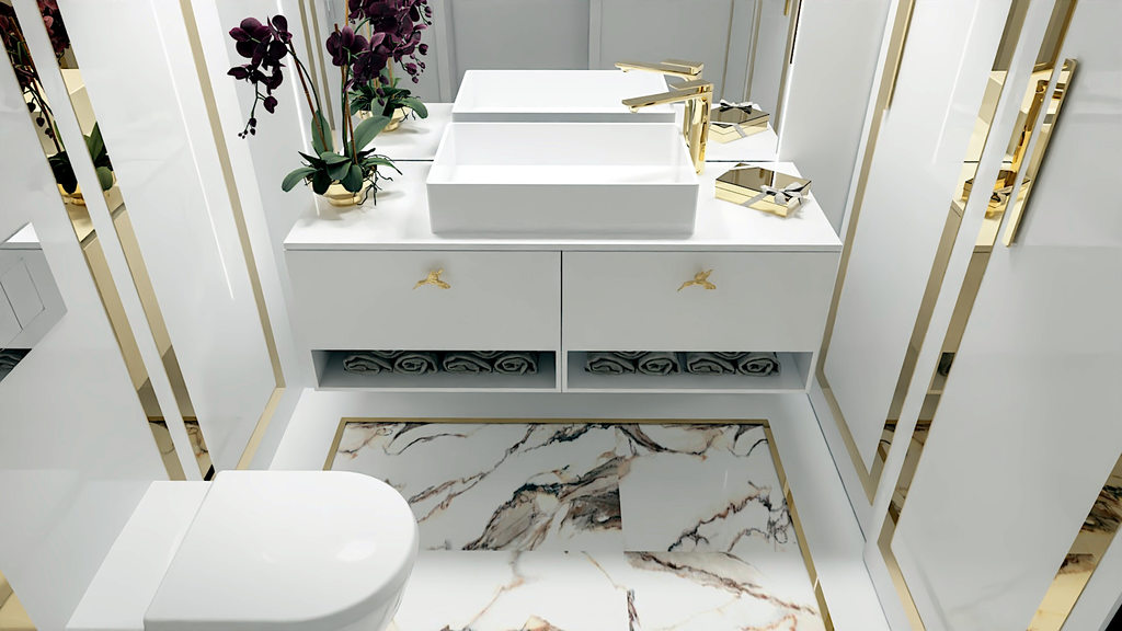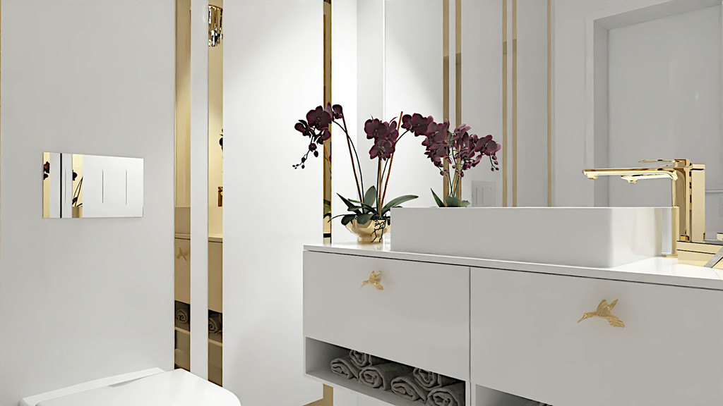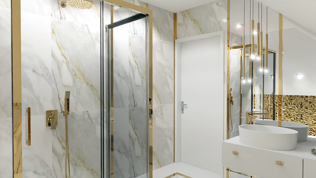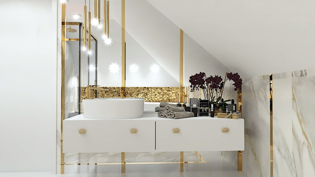 W galerii tej części projektu pokazujemy łazienkę mniejszą „gościnną” oraz pokój kąpielowy. Jasny wystrój i efektowne, eleganckie materiały w połysku dodają wnętrzom elegancji i sprawiają, że pomimo upływu czasu nie stracą na swoim pięknie i przez długie lata będą wzbudzały zachwyt.